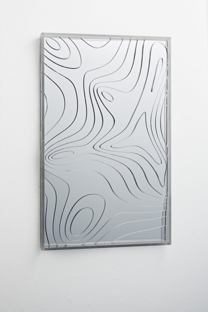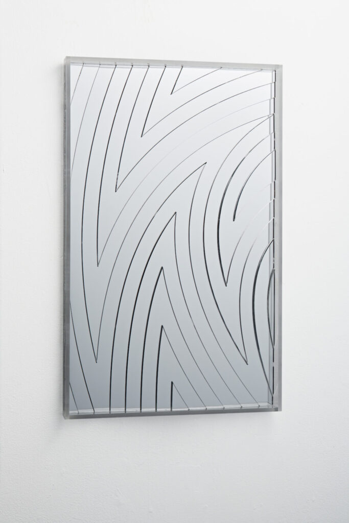 Mirrors were said to reflect the source of the self and were treated as sacred objects. The origins of the mirror can be traced back to a water mirror reflected in the water surface. The rippling surface of the water rises up three-dimensionally and reflects light, and when you get closer and look into it, your face is reflected in a distorted way. Still, you recognize that it is you. A series of works that trace back to the roots of self-awareness by distorting the real world of reflection.